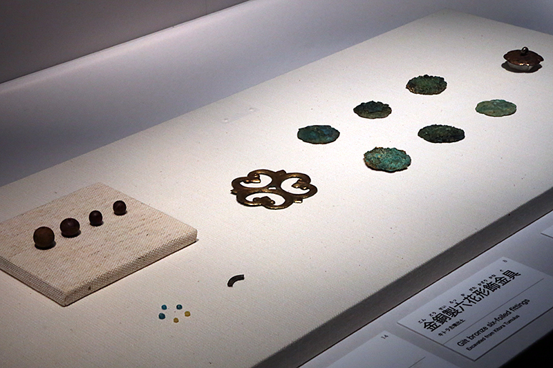 キトラ古墳 出土遺物 手前は「黒漆塗銀装太刀」(推定復元)