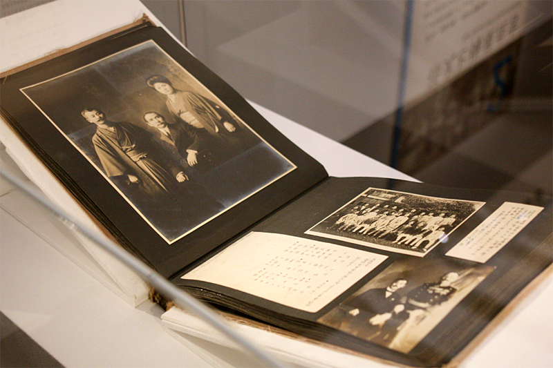 革命の志士の寄せ書き衝立。左上には蒋介石の名も。