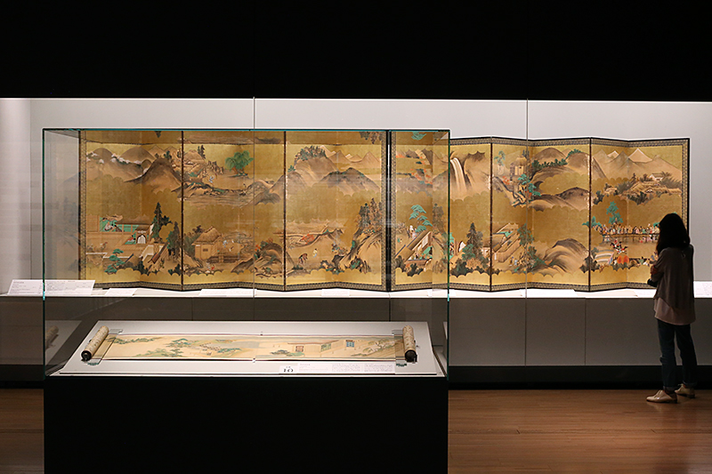 (奥)《南都八景》海北友雪画 サントリー美術館 / (手前)《五行之図》海北友雪画 個人蔵