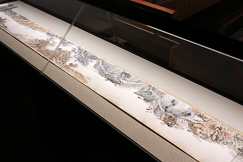 最晩年の大作が、88歳で描いた《蓬莱仙境図》。山々は抽象画のような豪快さの一方で、背後に鹿が控える仙人、空を舞う二羽の鶴はきっちりと描写。メリハリがついた構成です。