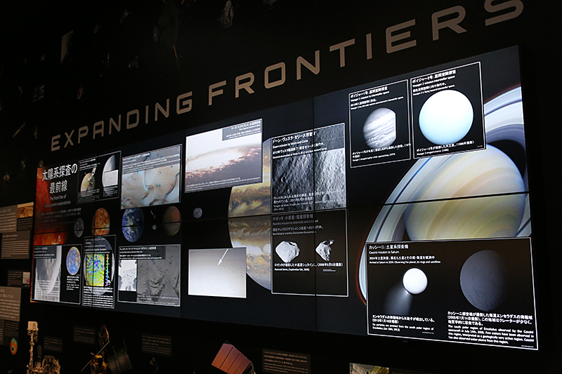 惑星などの大きさを比較できるテーブルや、宇宙の映像を眺めながらくつろげるコーナーも設けられました。