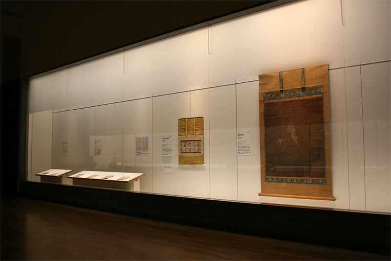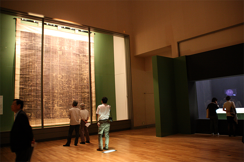 大きな展示物は現存最古の両界曼荼羅図といわれている国宝「両界曼荼羅図(高雄曼荼羅)」。うっすらと線が残っています
