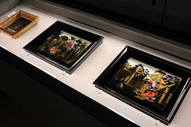 (左奥から)《ガラス絵「洗礼者聖ヨハネの斬首」》 / 《ガラス絵「ライオンの穴の中のダニエル」》 / 《ガラス絵「サウルとエンドルの口寄せ女」》