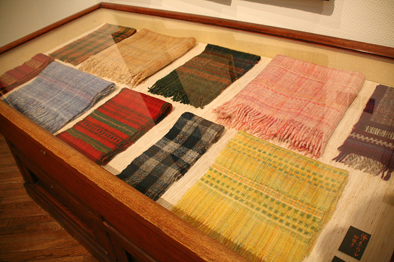 柳悦孝による毛のショールやマフラー。ほっこりとした味わい。