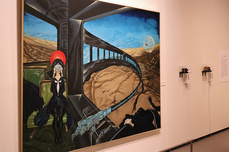 (左から)中村宏《円環列車・B ── 飛行する蒸気機関車》 / 桑原弘明《Scope「詩人の椅子」》 / 桑原弘明《Scope「遠い星」》