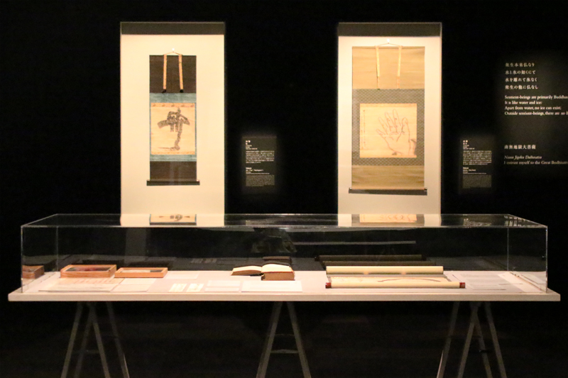 「『関係性』を考えるためのセクション」では、11人のアーティスト、思想家などの作品や言葉を紹介。白隠や鈴木大拙の書、言葉などが並ぶ。