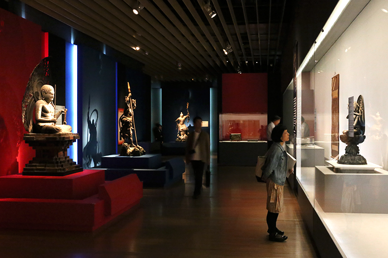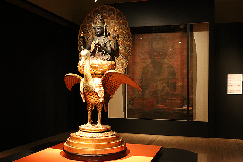 (手前)重要文化財《孔雀明王坐像》快慶作 / (奥)国宝《五大力菩薩像のうち金剛吼菩薩像》(展示は10/11~11/3)