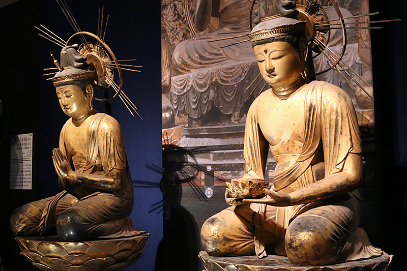 国宝《阿弥陀如来および両脇侍》のうち、左から《勢至菩薩坐像》《観音菩薩坐像》