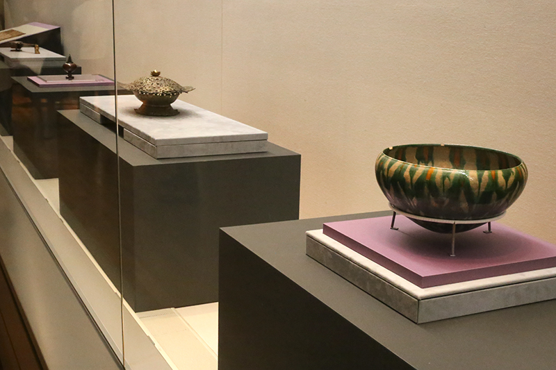 (右から)《磁鉢》 / 《金銅花形合子》(ともに展示期間:10/15~11/3)
