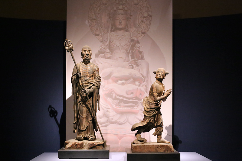 国宝《文殊菩薩および眷属》快慶作 のうち、左から《仏陀波利立像》《善財童子立像》