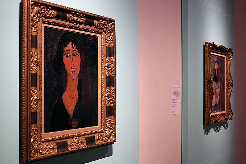 (左)アメデオ・モディリアーニ《バラをつけた若い婦人》