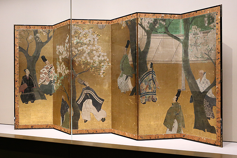 重要美術品《桜下蹴鞠図屏風》江戸時代