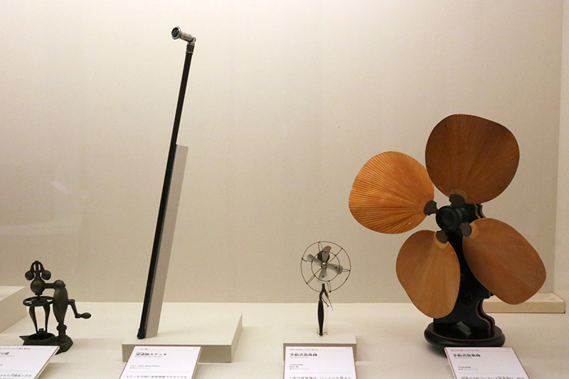 こちらのコラム展示は「江戸東京レアグッズ」。回す人は涼しくならない《手動式扇風機》や、小さくなった墨でも摺れる「墨摺り器」など、役に立つのか立たないのか微妙な迷品・珍品は必見です。