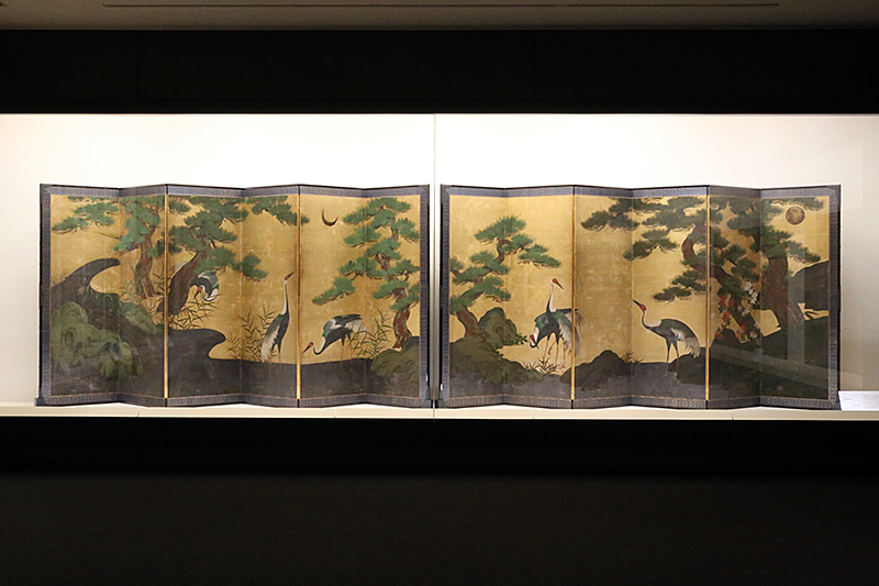 2015年1月4日からは国宝《雪松図屏風》がここで展示されますが、会期前半で紹介される重要文化財《日月松鶴図屏風》も見逃せない逸品です(12月25日まで)。