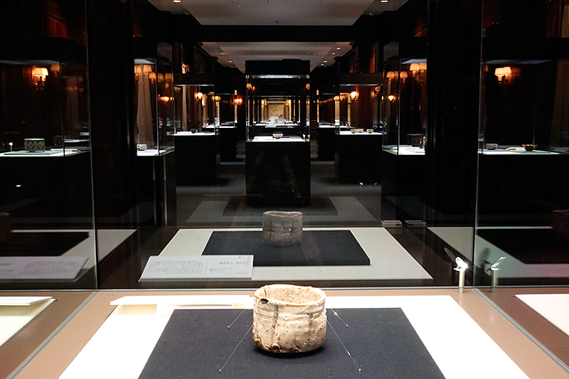 順に《粉引茶碗 銘残雪》、《備前徳利花入 銘雨後月》、野々村仁清《色絵桐巴紋水指》