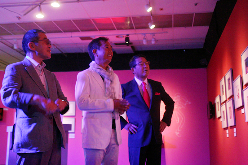 オープニングセレモニーに駆けつけた三人。左から原作者のモンキー・パンチさん、ルパンの声を担当している栗田貫一さん、特別ゲストの徳光和夫さん