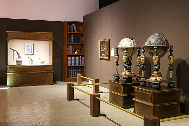 会場には魔除けやお守り、呪文の護符など「魔女の黒魔術」に対抗するための品々や、当時の人にとっては魔法のように思われた錬金術の道具などが並びます。