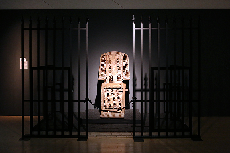 動画でのご紹介はここまでにしますが、展覧会はこの後が本番。第3章「裁く」には実際に使われた拷問や処刑の道具として「苦悩の梨」(歯を折り顎を砕く)、「スペインの長靴」(脛の骨を折る)、「死刑執行人の鉄マスク」(魔女の仲間に身元が知れないように顔を隠した)などを紹介。第4章「想う」では絵画や彫刻で表現された魔女とともに、日本の有名漫画家が手掛けた作品も展示されています。