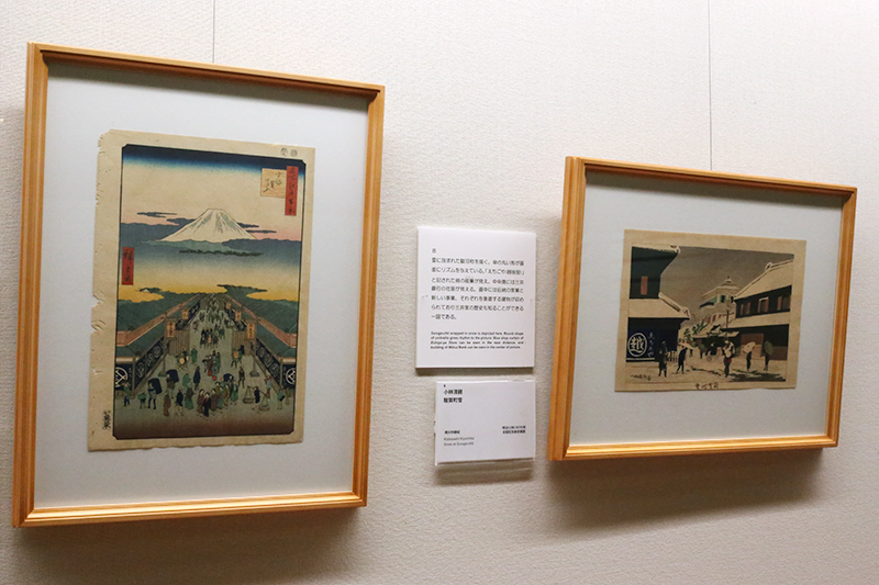 (左から)歌川広重《名所江戸百景 する賀てふ》 / 小林清親《駿河町雪》