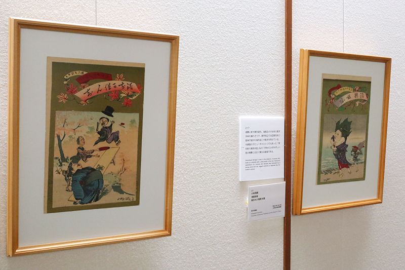 (左から)小林清親《清知可保ん知 東京おうじ瀧の川》 / 小林清親《清親放痴 東京大川端新大橋》