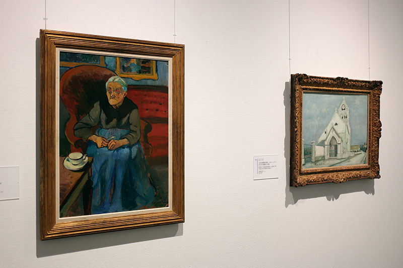 (左から)スュザンヌ・ヴァラドン《画家の母》 / モーリス・ユトリロ《「小さな聖体拝受者」、トルシー=アン=ヴァロワの教会(エヌ県)》