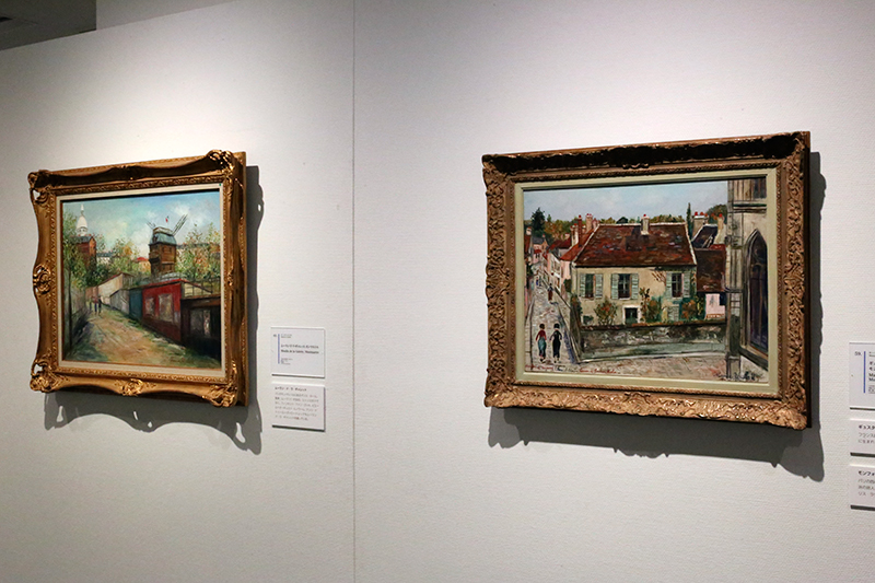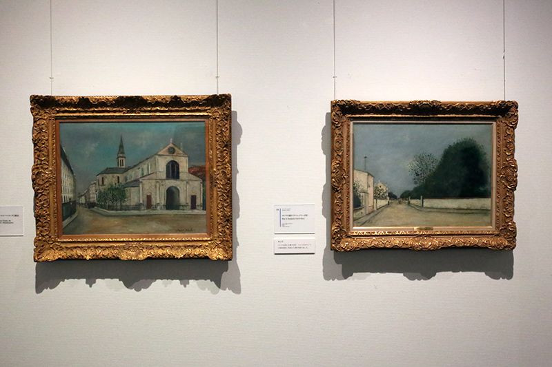 (左から)モーリス・ユトリロ《クリニャンクールのノートル=ダム教会、モンマルトル》 / モーリス・ユトリロ《サノワの通り(ヴァル=ドワーズ県)》