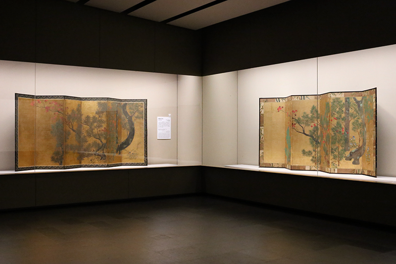 (左から)《槇楓図屏風》伝 俵屋宗達筆 山種美術館蔵 / 重要文化財《槇楓図屏風》尾形光琳筆 東京藝術大学蔵(4/18~5/3展示)