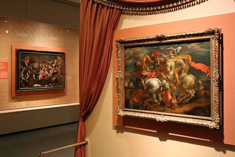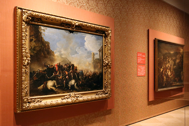 (左から)サルヴァトール・ローザ《戦闘》 / ルカ・ジョルダーノと工房《ホラティウス・コクレスの物語》