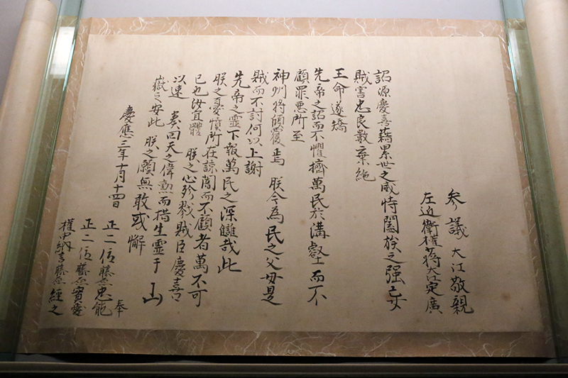 2015年の大河ドラマは、井上真央さん演じる杉文(すぎふみ)が主人公。吉田松陰の妹で久坂玄瑞と結婚し、後に群馬県令の楫取素彦と再婚しました。展覧会は大河ドラマと連動した恒例の企画、今回は杉文や吉田松陰ゆかりの品々を中心に、幕末維新期の長州藩にスポットをあてました。
