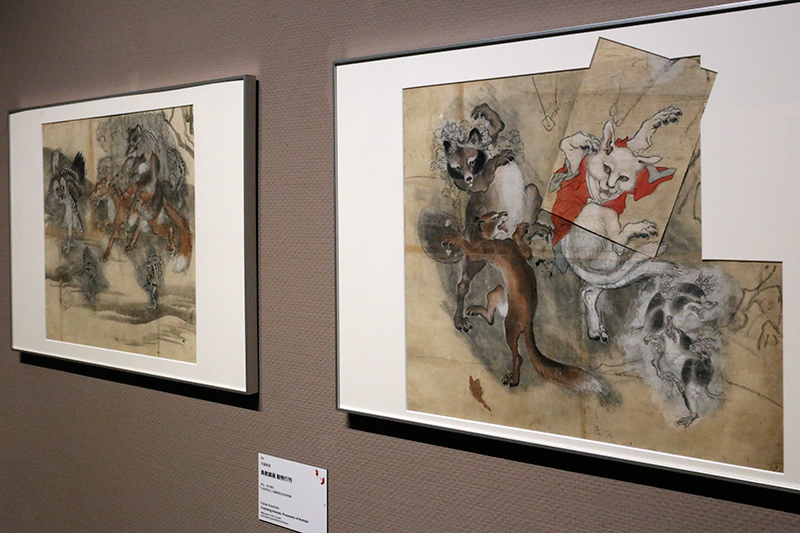 (左から)河鍋暁斎《鳥獣戯画 動物行列》 / 河鍋暁斎《鳥獣戯画 猫又と狸》