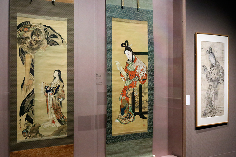 (左から)河鍋暁斎《閻魔と地獄太夫図》 / 河鍋暁斎《文読む美人図》 / 河鍋暁斎《文読む美人図 下絵》