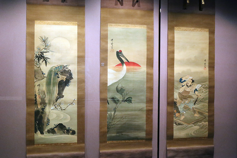 河鍋暁斎《浦島太郎に鶴と亀図》