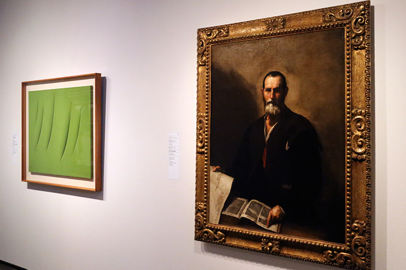 (左から)ルーチョ・フォンタナ《空間概念 期待》東京国立近代美術館 / ジュゼペ・デ・リベーラ《哲学者クラテース》国立西洋美術館