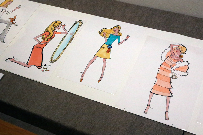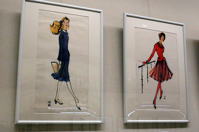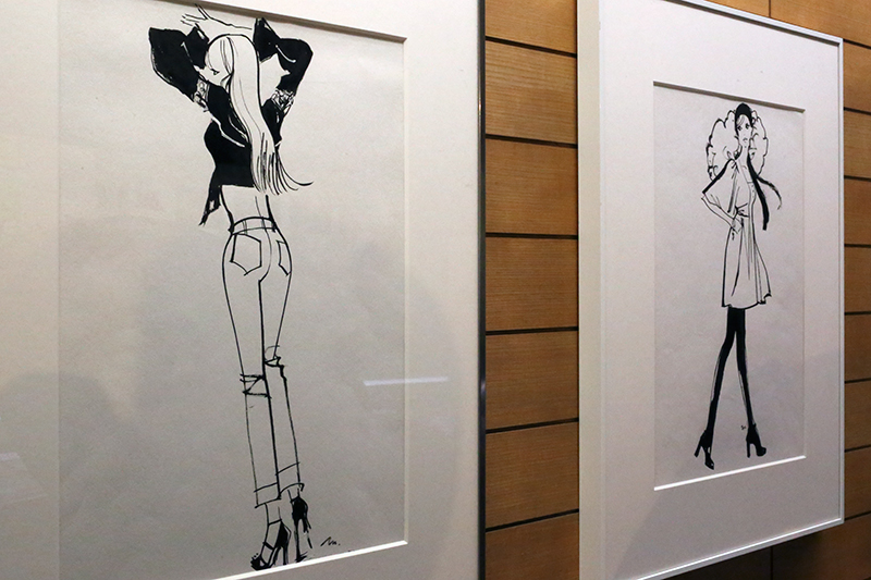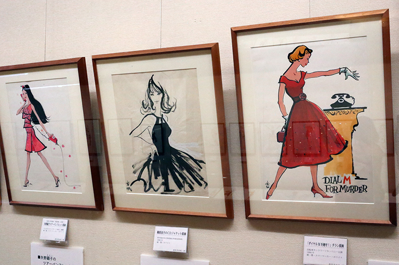 会場冒頭では、まず森本さんの代表的なファッションイラストが紹介されています。