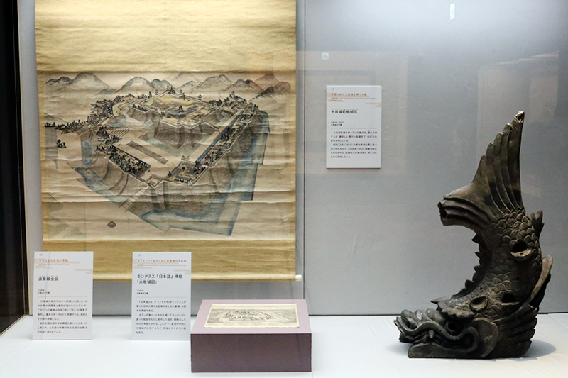 (左)《浪華城全図》(大坂城)大阪城天守閣蔵 / (右)《大坂城乾櫓鯱瓦》(大坂城)大阪城天守閣蔵