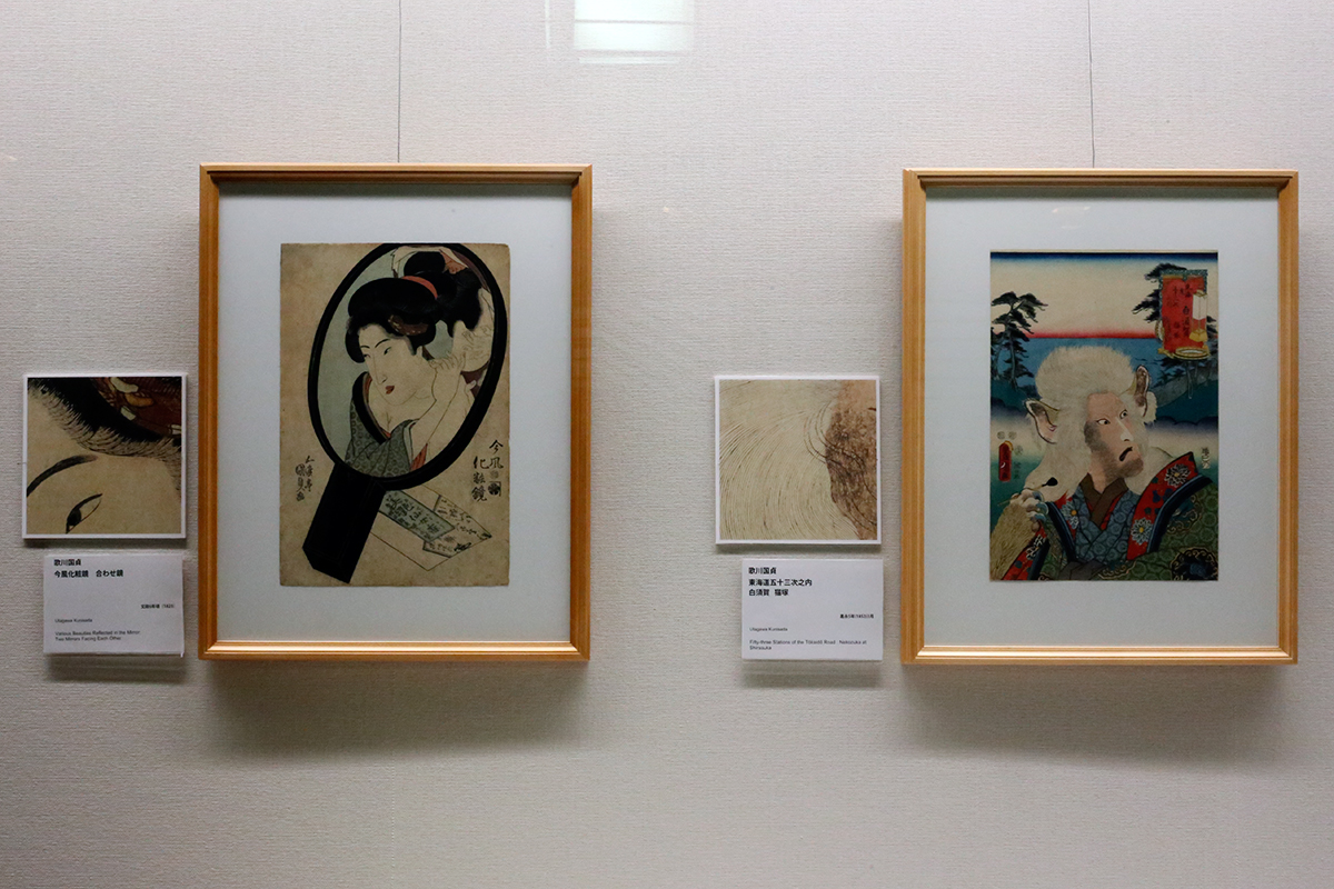 (左から)歌川国貞《今風化粧鏡 合わせ鏡》 / 歌川国貞《東海道五十三次之内 白須賀 猫塚》