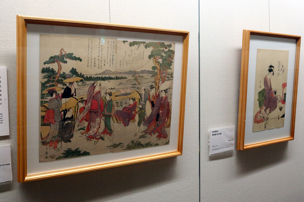 (左から)喜多川歌麿《三保の松原道中》 / 鳥文斎栄之《風俗略六芸 茶湯》