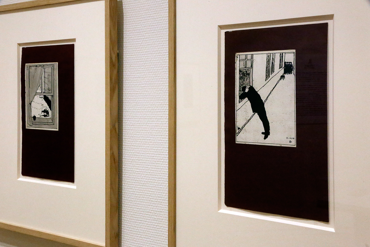 (左から)田中恭吉《あをそら》(私輯『月映』Ⅲ ひかるもの) / 田中恭吉《五月の呪》(私輯『月映』Ⅳ うつそみ) いずれも和歌山県立近代美術館