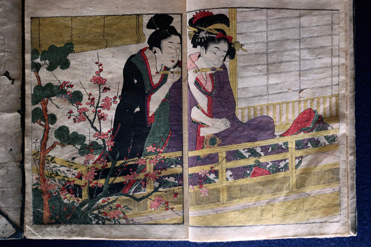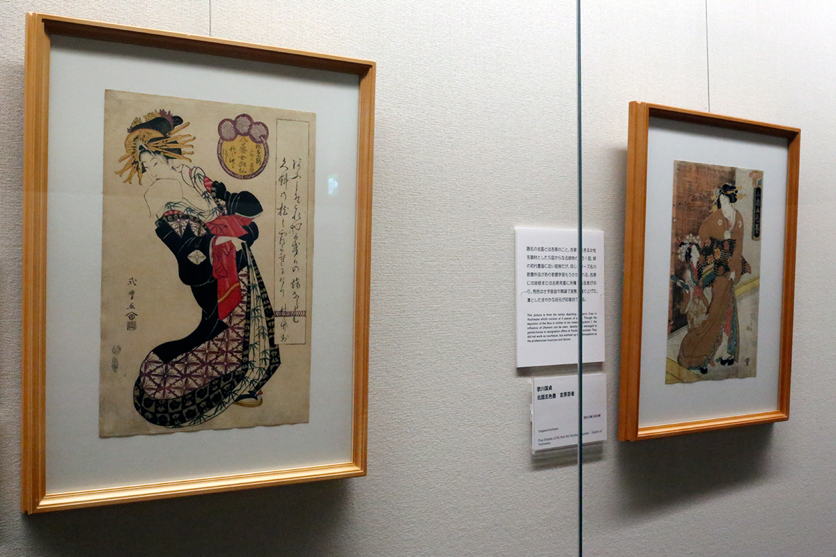 (左から)喜多川式麿≪今容女歌仙 三拾六番続 松葉楼代々竹≫ / 歌川国貞≪北国五色墨 吉原芸者≫