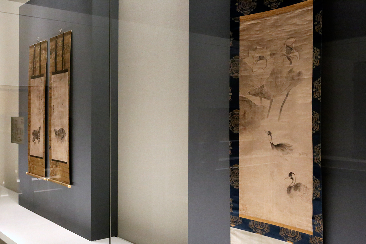 (左から)重要文化財《牛図》 俵屋宗達筆・烏丸光広賛 京都・頂妙寺 / 国宝《蓮池水禽図》 俵屋宗達筆 京都国立博物館