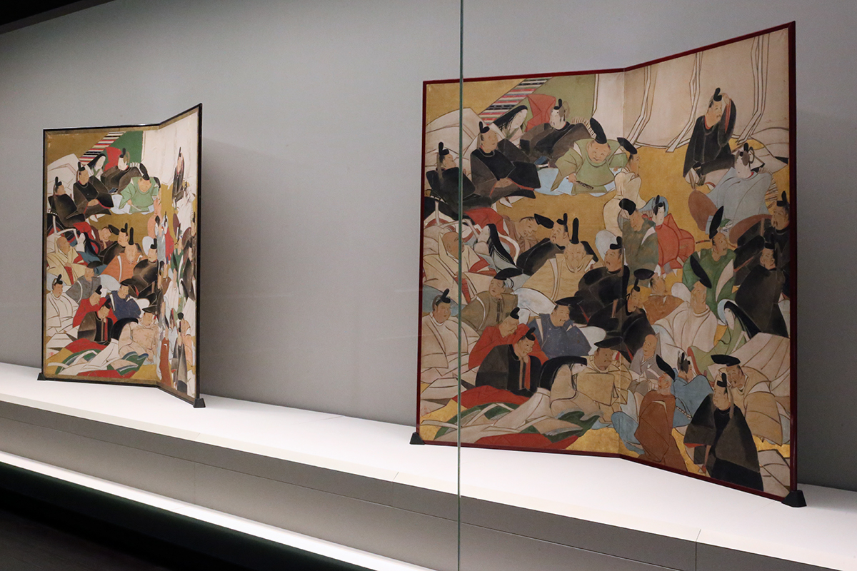 (左から)《三十六歌仙図屛風》 酒井抱一筆 米国・エツコ&ジョー・プライスコレクション / 重要美術品《三十六歌仙図屛風》 尾形光琳筆 愛知・メナード美術館