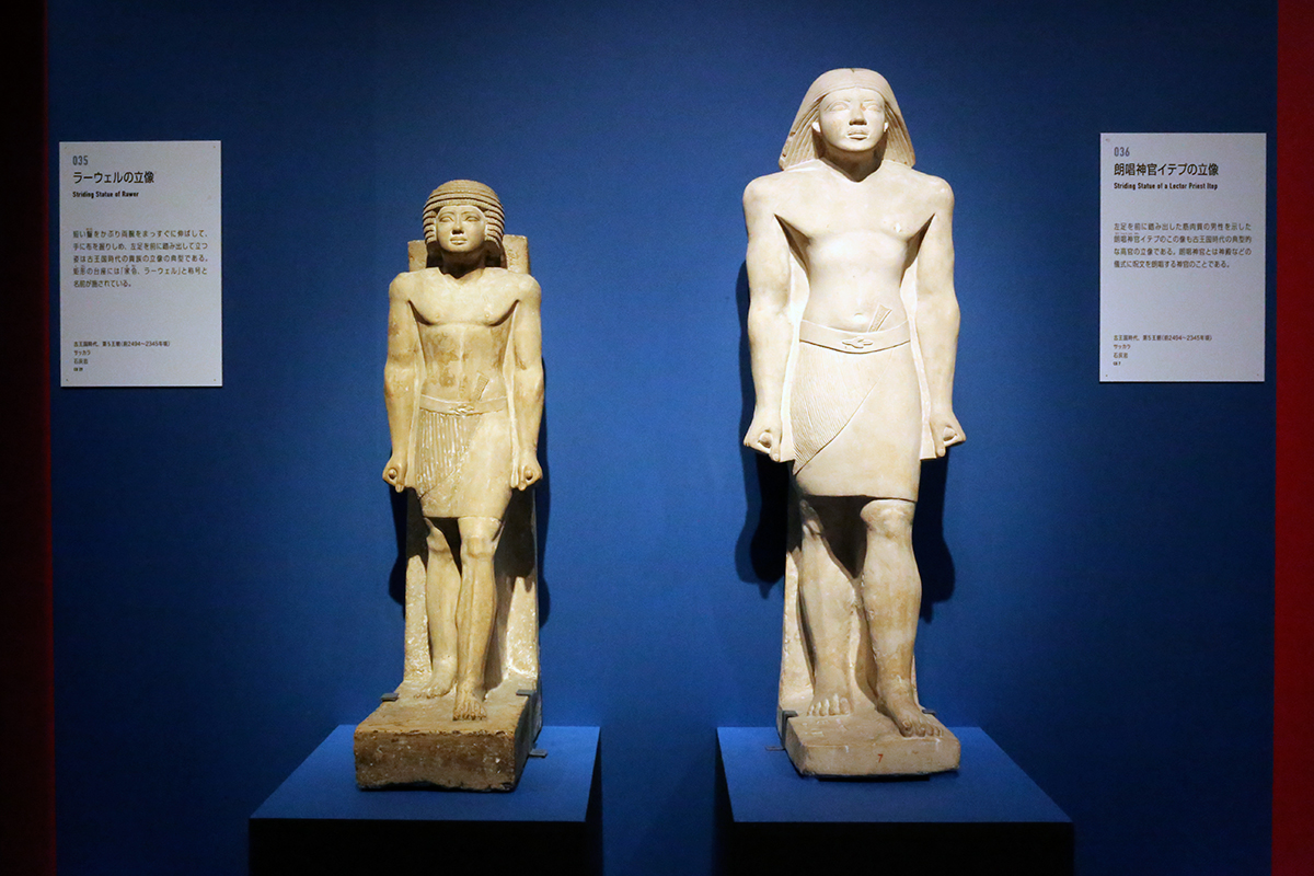 (左から)《ラーウェルの立像》 / 《朗唱神官イテプの立像》