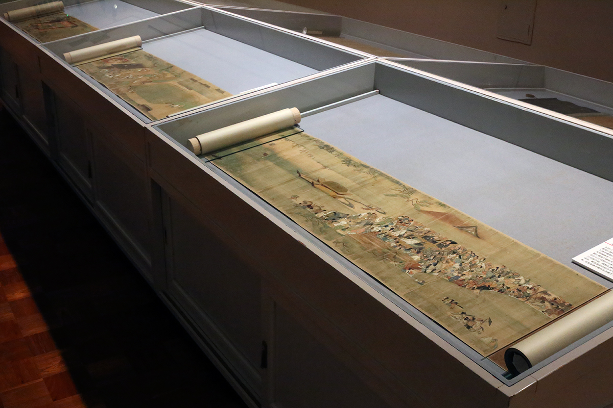 描かれたのは700年以上前ですが、大切に守られて来た事もあって、描写は現在でもくっきり。山河の姿を四季の風情も交えて叙情豊かに表現するとともに、人々の衣装や風俗・建物なども実に細かな部分まで描かれているため、美術史的にはもちろん、文化史の上でも極めて重要な資料です。
