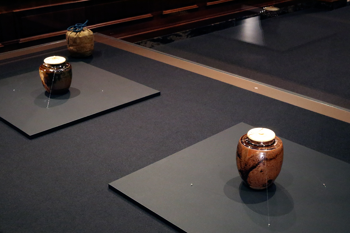 (左奥から)《瀬戸面取手茶入 佐久間面取》 / 重要文化財《唐物肩衝茶入 北野肩衝》