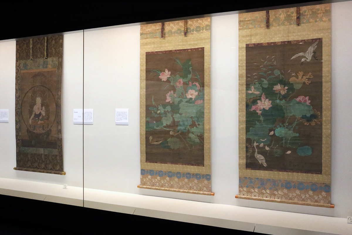 (左から)国宝《虚空蔵菩薩像》(展示は11/29まで) / 重要文化財《蓮池水禽図》(展示は12/27まで)
