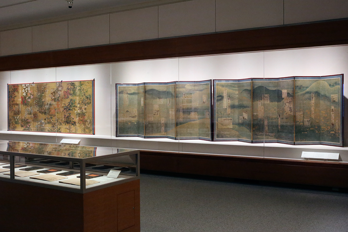 本展では修理されていた逸品2点のお披露目が注目。ひとつ目は俵屋宗達による国宝《源氏物語関屋・澪標図屏風》です。