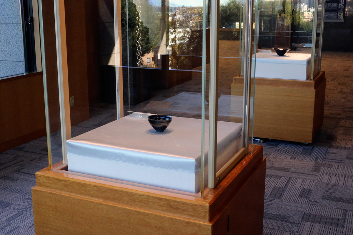 いつもは展示室内で出る事が多い曜変天目ですが、今回はラウンジでの展示。