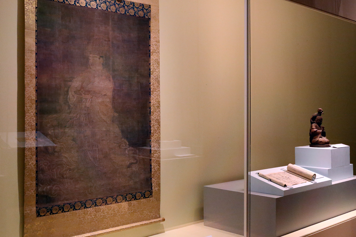 (左から)国宝《善女龍王像》定智筆 金剛峯寺蔵 / 《法隆寺花山龍池縁起》顕真筆 法隆寺蔵 / 《龍王坐像》法隆寺蔵