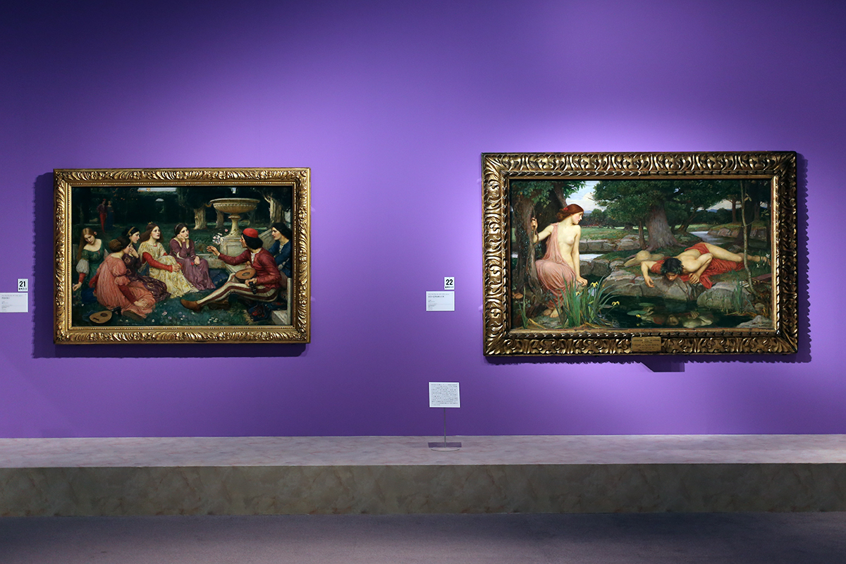 (左から)ジョン・ウィリアム・ウォーターハウス《デカメロン》 / ジョン・ウィリアム・ウォーターハウス《エコーとナルキッソス》