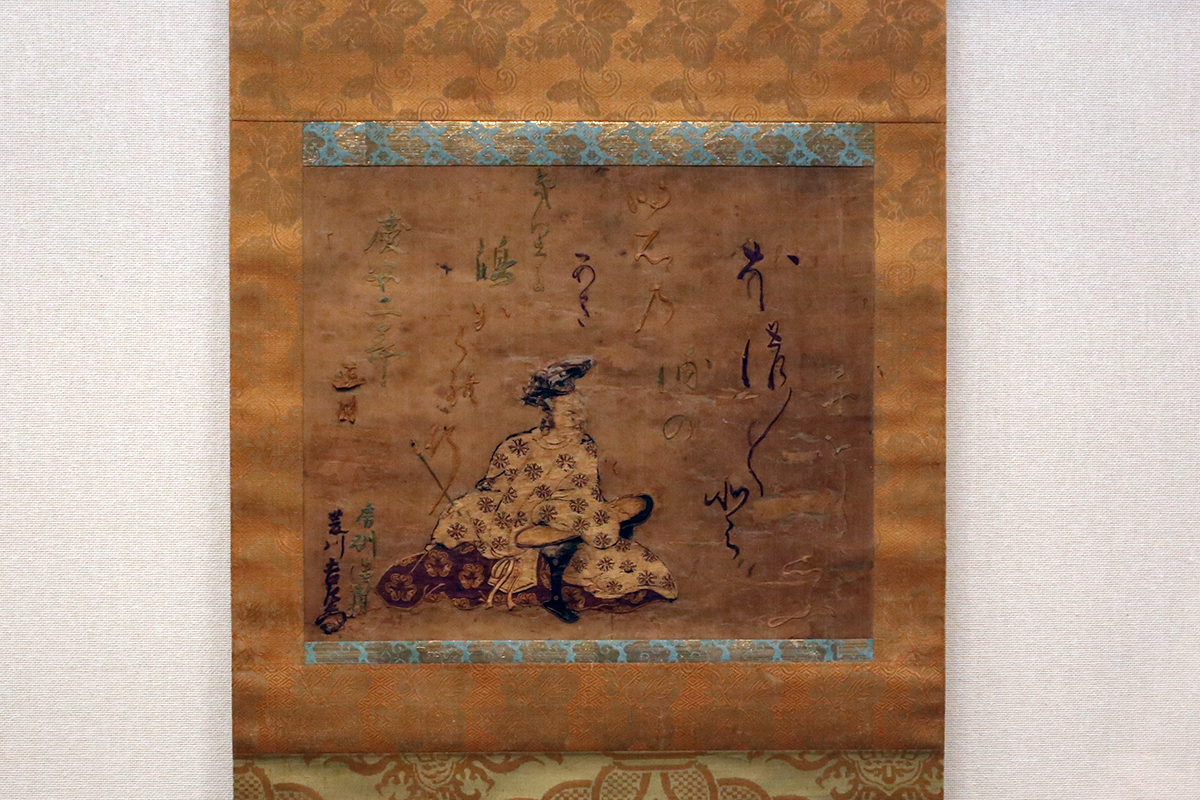 師宣の父・菱川吉左衛門は縫箔師でした。本展では、父が刺繍で作った《柿本人磨像》も出展されており、師宣が育った環境が伺えます。